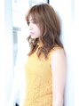ゆるくふわっとしたパーマスタイルにカラーは明るめのベージュ系で重く見せないように!カットはセミロングでAラインにシルエットがなるようにカットしています!