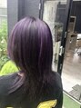 ブリーチでメッシュを入れ、その部分に紫を入れました。外のひかりのもとだと、よりメッシュのラインが強調して見えます^ ^