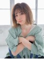 肩にあたる長さで切りそろえた切りっぱなしのミディアムボブ。切りっぱなしボブは毛量が多い方だと全体的に思ためな印象になってしまいがちですが、シースルーバングにすることで軽い印象がプラスされてバランス良く仕上がります。【関内 馬車道】