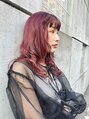 深みがあるけど透け感もあるピンクとしっかりウェーブ。短めのぱっつん前髪と顔まわりのレイヤーがポイントです◎THREE noon/082-923-5555/Instagram:three_hiroshima