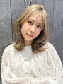 ミディアム韓国ヘア前髪カットブロンド_F0206
