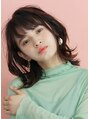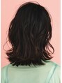 32ミリのアイロンで毛先ワンカール巻いたミディアムレイヤースタイルです。顔周りに軽さをプラスして暗めの髪でも重くなりすぎないようにしました。