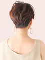 前髪長めの耳かけショートです。襟足と耳周りをスッキリ短くしつつ丸みを残すことでメリハリのある女性らしいショートになっています。カラーは艶のあるアッシュブラウンで暗くなりすぎないようにしています。