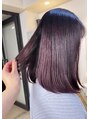 1ブリーチでできる暗めのパープル。色落ちも透明感が出るので、人気のカラーです。黄色味をおさえるパープルと、色持ち効果のある暗めのピンクをミックスしています。
