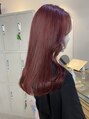 ブリーチ一回で作るカシスレッドカラーです。暖色カラーは、色味が入りやすいのでブリーチ回数少なくても入ります。