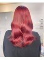 ブリーチ1回で可能なレッドカラー。赤系のカラーは色持ちがよく、肌の色も白っぽく見えるのでおすすめです!