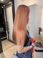 ダブルブリーチでベースを作った髪にオレンジにほんのりピンクを*ブリーチ1回ベースの髪にでも色味の濃いオレンジでも良ければ可能です
