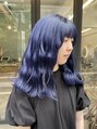 ダブルケアブリーチでつくるネイビーカラー。色落ちが緑っぽくならないように、紫も混ぜています。