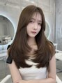 透明感ベージュカラー/ロングレイヤー/ワンカール/顔周りカット