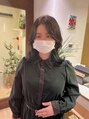 巻いたら鎖骨ぐらいではねるような長さにして、表面と顔周りにふわっと動くレイヤーが入っているのでご自分でも再現しやすいです♪インナー部は1ブリーチして上からグリーンで染めていて少しだけ攻めたデザインにしています