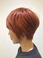 丸みを持たせたショートレイヤースタイル。ネープをタイトに締めることで後頭部に丸みが作られ骨格補正にもなります。エッジを効かせたオレンジベージュカラー!