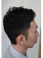 はっきりとツーブロックにせず馴染むようなサイドを作り、ネープ(えり足)までぐるりとスッキリさせた爽やか好印象スタイルです! カッコよさと優しい印象が同時に表現できます。
