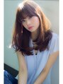 丸顔さんの前髪は、チラッと「おでこ」を見せた「おろし流し前髪」がオススメ◎目尻から顎ラインに毛流れをデザインしてシャープな印象にすると小顔になります!カールは強すぎないでナチュラルがポイントです。「The C by afloat」は必ず小顔に導きます!!