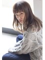丸顔さんの前髪は、チラッと「おでこ」を見せた「おろし流し前髪」がオススメ◎目尻から顎ラインに毛流れをデザインしてシャープな印象にすると小顔になります!カールは強すぎないでナチュラルがポイントです。「The C by afloat」は必ず小顔に導きます!!