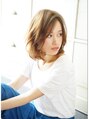 丸顔さんの前髪は、チラッと「おでこ」を見せた「おろし流し前髪」がオススメ◎目尻から顎ラインに毛流れをデザインしてシャープな印象にすると小顔になります!カールは強すぎないでナチュラルがポイントです。「The C by afloat」は必ず小顔に導きます!!