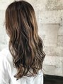 赤さえお抑えたオリーブブラウンの中明度カラーを施した重軽ロングスタイルは落ち着いた大人女性の雰囲気◎