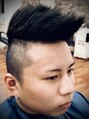 ◎2ブロックでストリートモードを演出。サイドと襟足は2ミリスタートのツーブロック刈り上げ。トップはツイストパーマをして上に立ち上がるように長さを残しカットしました。個性的かつ、ワイルドstyle好きな方々にオススメです。