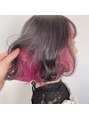暗めのラベンダーグレージュにビビットなピンクのカラーバターをインナーカラーに入れました♪インナーはカラーバターで入れてるのでさらっさら☆