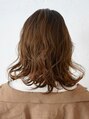 バングのセンターパートを中心に大きなランダムウェーブが映えるデザインミディ。大きなウェーブが重くならないよう、ウェットに仕上げるのがコツ。【EARTH志木店】