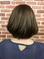 クールなカラー ミントベージュのワンカールボブ。カラーはダブルカラーで透明感を出してます。スタイリングは毛先をワンカール巻きでヘアクリームをなじませて完成。