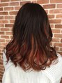 オレンジ&ピンクのインナーカラー。インナー部分を多めにとって2色で動きを出してます。トップは暗めなピンクでインナーと馴染ませました。カラー、スタイルの相談お待ちしてます。
