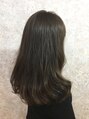 艶感のいいミントベージュのカールスタイルです。寒色系単品よりベージュ系が入ることによってナチュラルに仕上がります。トーンはあまり下げないように色味と艶感をだしてます。毛先はパーマを生かしてます。
