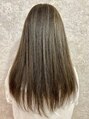 透明感のいいグレージュハイライトロングです。全体にハイライトを入れて動きを出してます。ハイライト部分はブリーチ、他部分はトーンダウンで明暗をつけてます。ロングはもちろんボブやショートにもハイライトおすすめです。