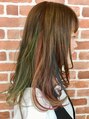 ハイライト&ミックグラデーションカラーです。ハイライトはポイントで動きが出るように入れ、グラデーション部分は3色ミックスで動きをだしてます。退色具合も楽しめるカラーです。