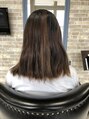カットはやや前下がりの切りっぱなしボブです。ベースはアッシュで5レベルで暗めにしてあります。伸びてきても根元が気にならないです。コントラストをつけたハイライトのデザインです。全体にハイライトがしっかり出るように入れてあります。【熊谷】