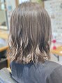 肩レングスのミディスタイル。外ハネや耳掛けする事で印象が変ります。スタイリングも簡単で、扱いやすさもアップ。カラーはフォギーベージュを選択。
