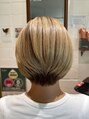 ハイトーンで白髪をぼかしたカラースッキリ前下がりショートで夏らしい爽やかヘアに!ブリーチ2~3回必要なカラーなのでご希望の方はお問合せくださいませ