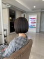 やや前下がりにカットした切りっぱなしスタイルあえてカットラインを残す事で毛先に厚みがでてオシャレ度UPカラーは全体にハイライトを入れて、グレージュカラーに!