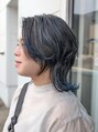 ブルーのハイライトが入ったハンサムウルフスタイル!個性を活かしながらもやり過ぎないカラーと人気なウルフをハンサムテイストで!