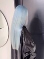 ブリーチでしっかり明るさを整え、淡く透けるペールブルーに。黄ばみを抑えたやさしい寒色で、ロングでも重たく見えない透明感のある仕上がりです。#ペールブルー#ブルーカラー#淡色ブルー#透明感カラー#ハイトーンカラー#ブリーチカラー#寒色カラー