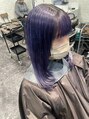 もとのブリーチ履歴を活かし、N.ルフレカラーのモーヴで紫カラーに仕上げました。根元・中間・毛先でトーンを分けて塗り、自然なグラデーションに。カットは顔周りにレイヤーを入れ、ベースはワンレングスでまとまりよく整えています。