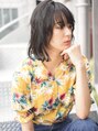 ボブベースにレイヤーを入れて自然な動きが出せるスタイルです。前髪はうざバング!邪魔な時は流したりかきあげたり、アレンジのしやすい長さにしました!カラーはオリーブグレージュ。カットで軽さを出しているので暗髪でも重たく見えすぎないスタイルです。