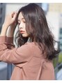 抜け感のあるセミロングヘアにダークモーブカラーと波打つようなフリンジエフォートレスウェーブパーマがカワイイ!