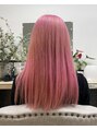 ペールピンクにするためにブリーチを3回ほどくり返しています。オイルケラチンカラーで退色しにくく、彩度がきれいなカラーになりました。
