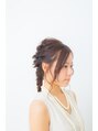 ◆当日は他のヘアセットメニューへの変更も可能です◆トップはくるりんぱ、後ろに髪を集めてフィッシュボーンに編み込んだアップスタイルです。(ミディアム以上の長さが必要になります)