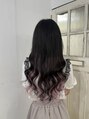元々ブリーチ毛のピンクベースから暗めのカラーをして、色落ちすることも考えエクステは真っ黒ではなく少し黒よりの茶色を付けています! インナーのピンクはサイドの顔周りと襟足に25本程付けています◎!