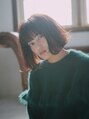 ランダムに動く毛先がかわいいアゴラインボブ。ストレートの方はゆるふわくせ毛風のパーマをかけるとGood!まゆラインの前髮もかわいいアンニュイな無造作ボブスタイル☆カラーは軽さがでやすいイエローベージュで柔らかさをプラス☆[西葛西/西葛西北口]