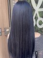 真っ黒は嫌!青色出したい!でも派手なのも嫌!そんな方にオススメな青濃いめのブルーブラック♪伸ばしかけの髪の毛にエクステをつけて、エクステも一緒にカラー!一緒に色落ち楽しめます^^