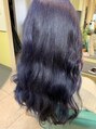 大人気のネイビーパープルカラー♪13レベルのベースからブリーチ1回のダブルカラーで染めました。元の髪色によってブリーチ1から3回必要な場合があります。