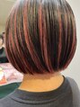 ピンクアンブレラカラー×ぱっつんボブ