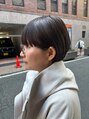顔周りを重めに残した丸みのあるマッシュショートスタイル。耳を掛けることでスッキリコンパクトな印象に。カラーはダークアッシュで赤みをしっかり消して透明感と艶感をアップ。オイルワックスでよりツルンと可愛く仕上がります。
