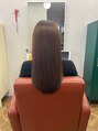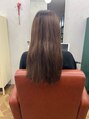 カラーと同時に髪質改善を行い、ツヤと手触りを両立した仕上がり。繰り返し染めてもパサつきにくく、色持ちも良いのが特徴です。ダメージが気