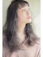 ロングの重ためスタイル。重くなり過ぎない様にバングはオン眉で毛先をのカットラインをぼかし透け感を。カラーもダークトーンなので無造作ランダムカールで軽さをだしてます。