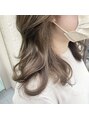 ダブルカラーでオリーブベージュに◎透明感が出てとっても可愛いです!ミディアムスタイルでヨシンモリ巻きで韓国風に!