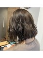 切りっぱなしボブのダークマットベージュ◎ミックス巻きで動きのあるスタイリングにすると大人可愛いスタイルになります!