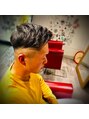 弱いカールをだす為ピンパーマをかけて分け目にラインでフェード